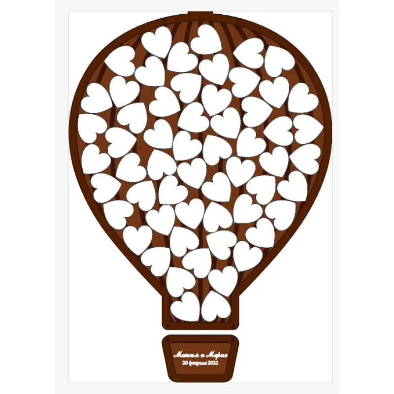 воздушный шар - 1 шт, деревянные сердечки 55-60 шт