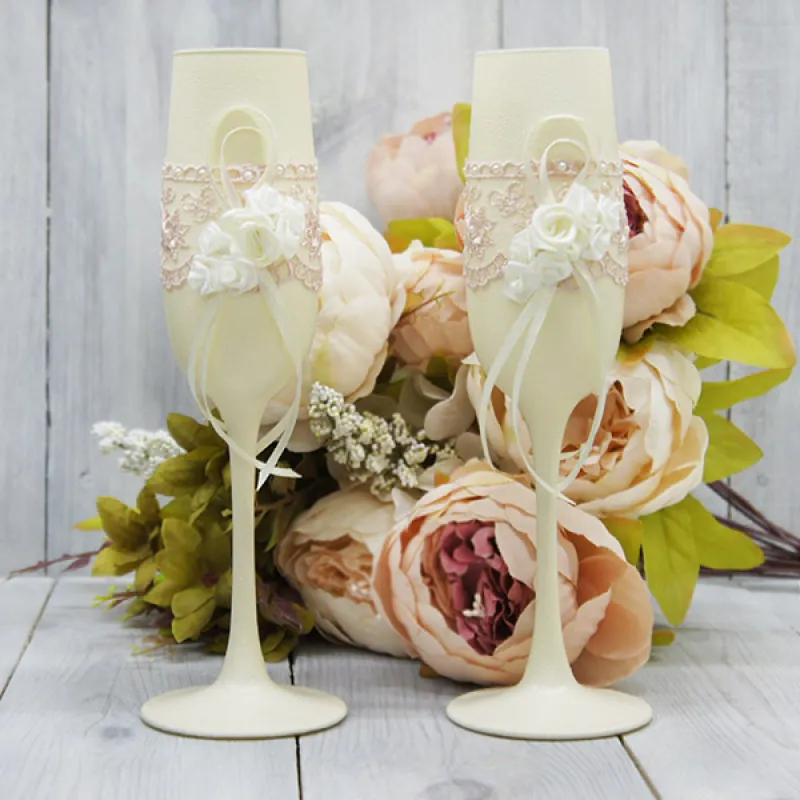 Нежные свадебные бокалы, выполненные в едином стиле со всеми аксессуарами данной коллекции.